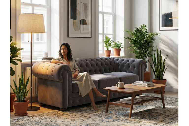 Il divano capitonnè mod. chesterfield, ideale per arredare abienti classici e moderni, soggiorni, hall hotel e alberghi, studi di professionisti, scenografie, punti vendita al pubblico ecc.